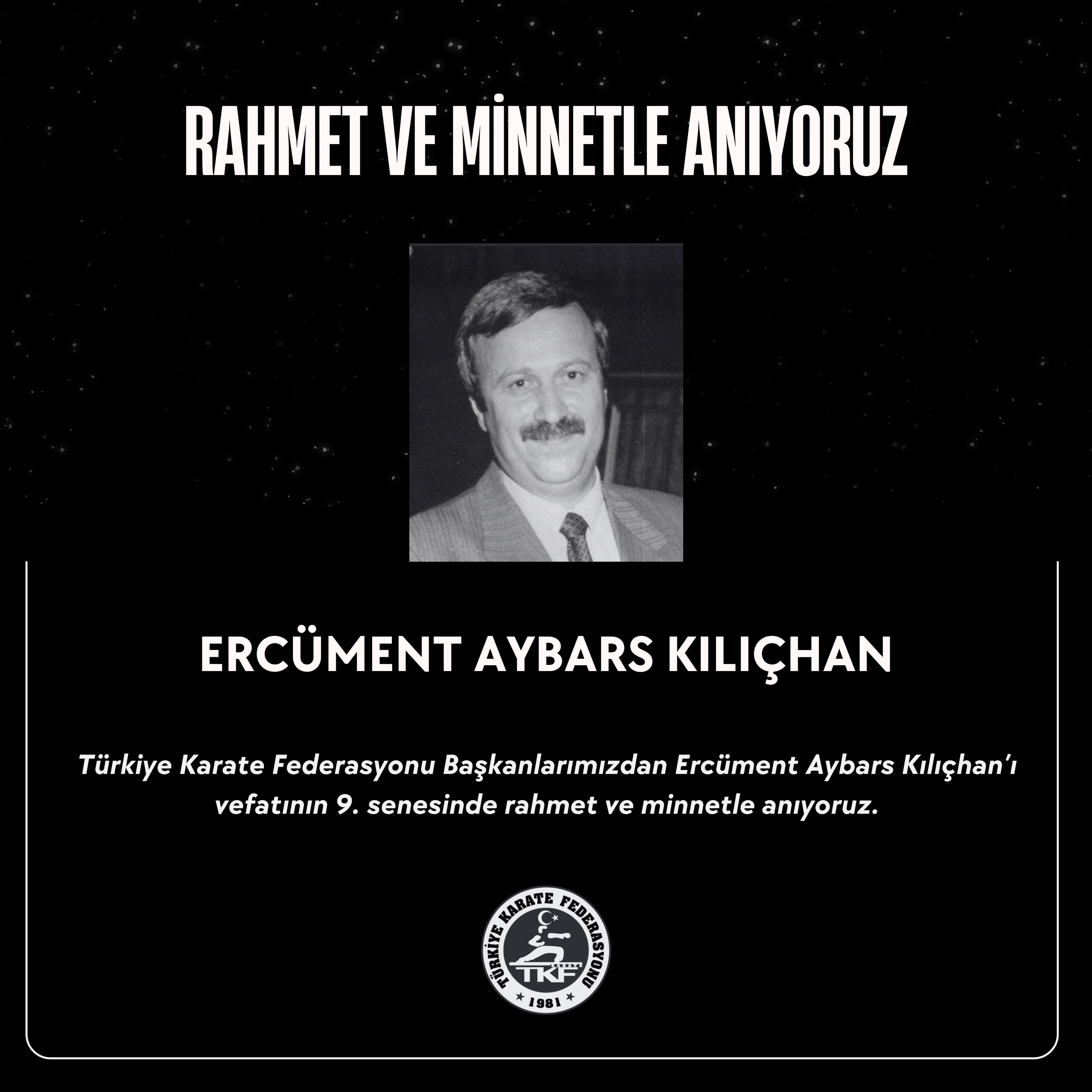 Türkiye Karate Federasyonu Başkanlarımızdan Ercüment Aybars Kılıçhan’ı vefatının 9. senesinde rahmet ve minnetle anıyoruz.